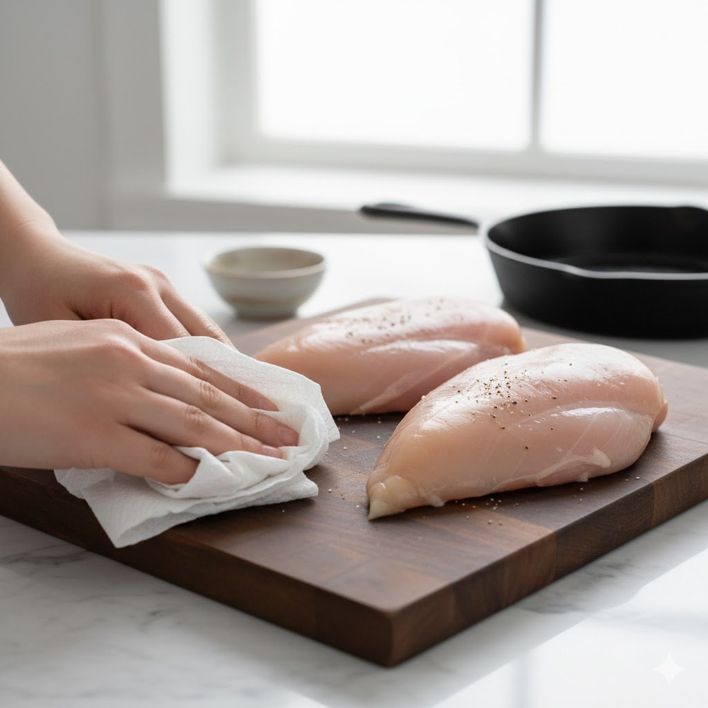 Pat the chicken breasts dry with a paper towel so the spices stick better.