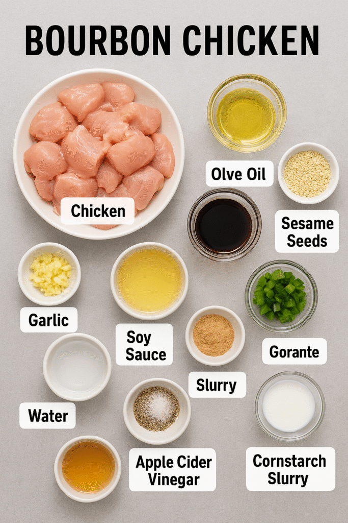 Bourbon Chicken is a beloved fusion dish that beautifully combines the sweet, smoky, and savory flavors of Southern and Asian cuisine. Despite the name, it’s not just about bourbon — it’s about that rich, sticky glaze that coats each tender bite of chicken. This recipe balances brown sugar, soy sauce, garlic, and a splash of bourbon (or apple juice for a non-alcoholic twist) to create a glossy sauce that caramelizes perfectly in your pan.