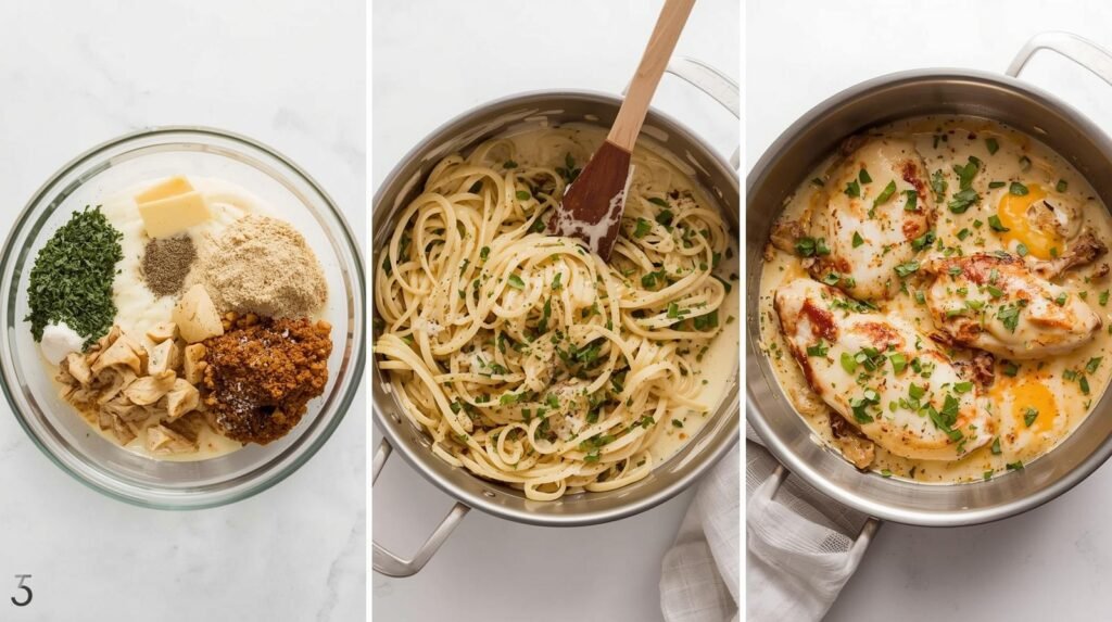 Garnish with parsley and extra Parmesan. Serve hot and enjoy that authentic creamy texture without the heaviness of a full cream sauce.