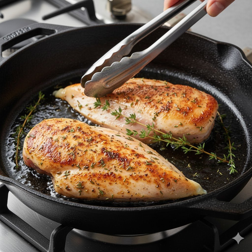 In a large skillet, heat olive oil or butter over medium heat. Sear the chicken on both sides for 3–4 minutes until golden. Remove and set aside.