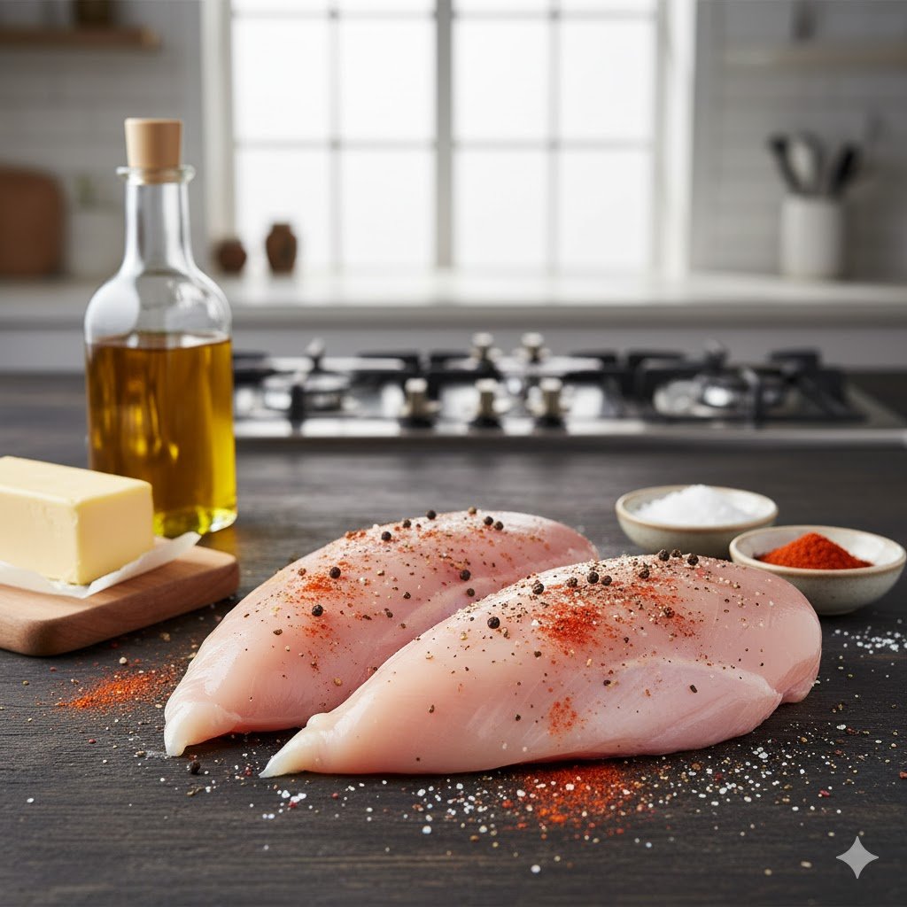 - 2 large boneless, skinless chicken breasts (halved horizontally)