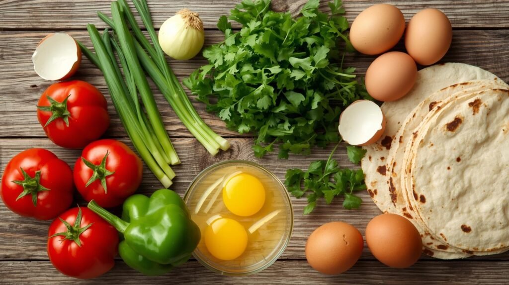- Place tortillas on a plate, spread beans, top with eggs, and pour warm salsa over them.