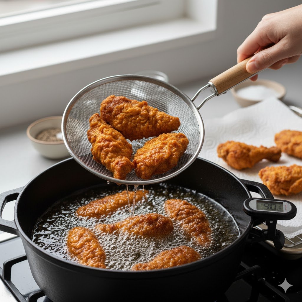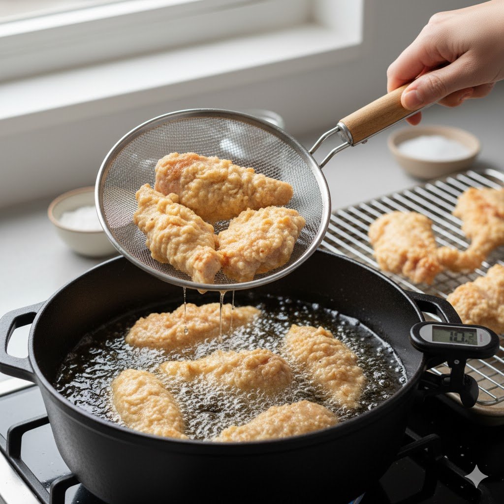 - Double frying is key it removes excess oil and moisture for long-lasting crunch.