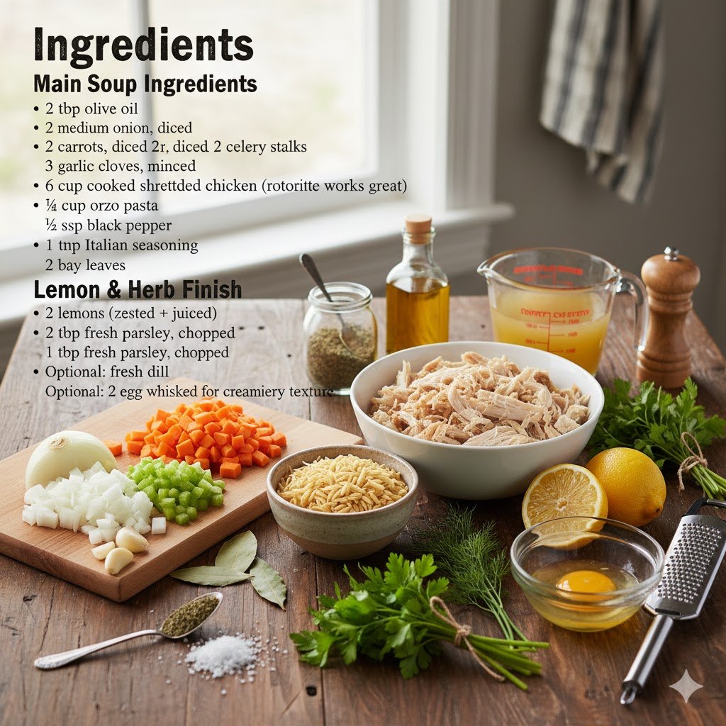 A bright, comforting, and refreshing soup made with tender chicken, silky orzo pasta, fresh vegetables, and a bold punch of lemon. This dish is perfect for cozy nights, meal prep, or when you want something light yet satisfying.
