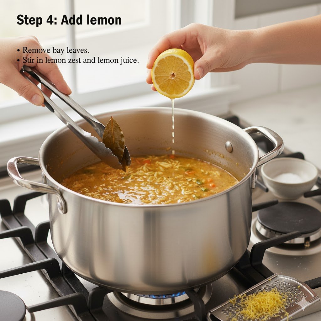 Remove bay leaves. Stir in lemon zest and lemon juice.