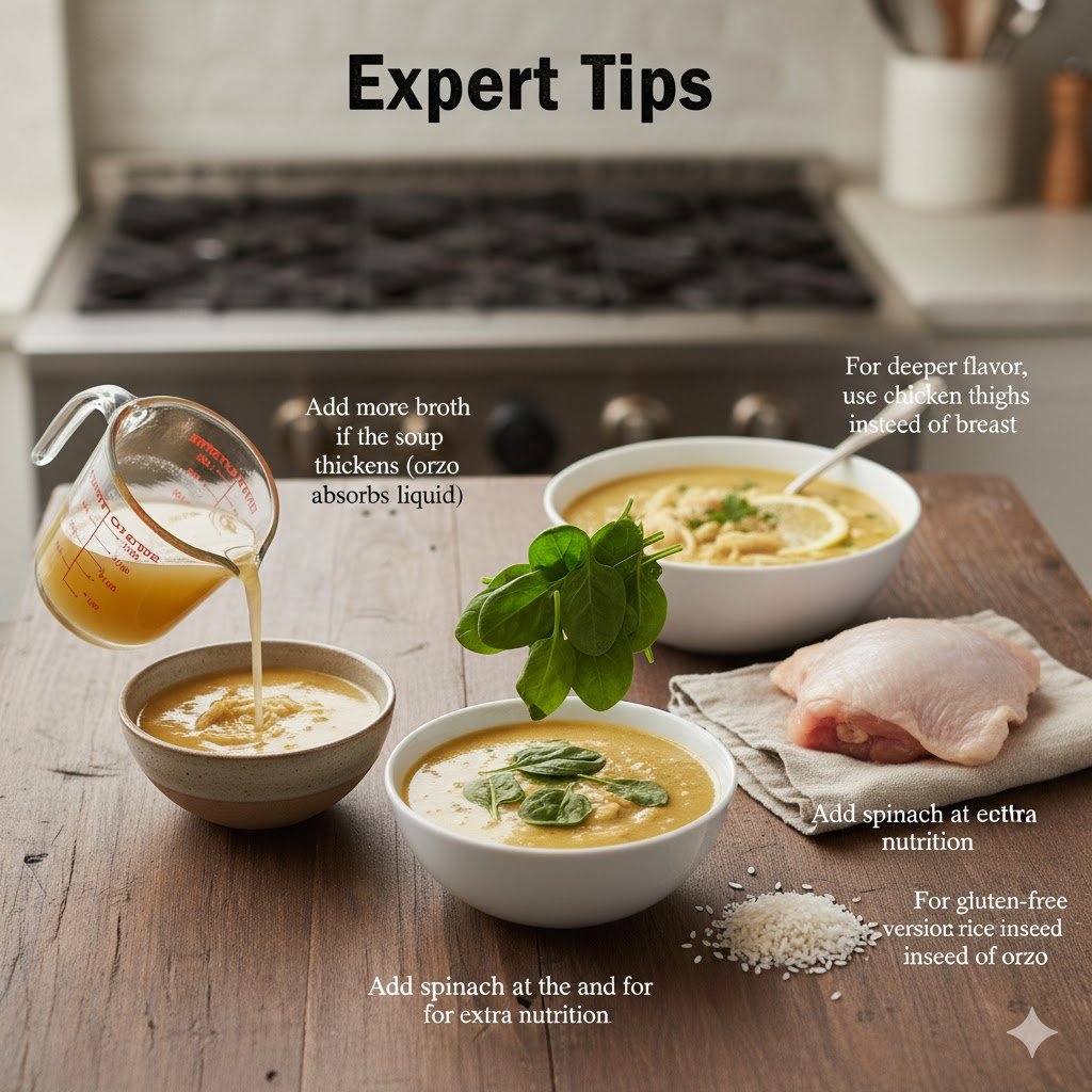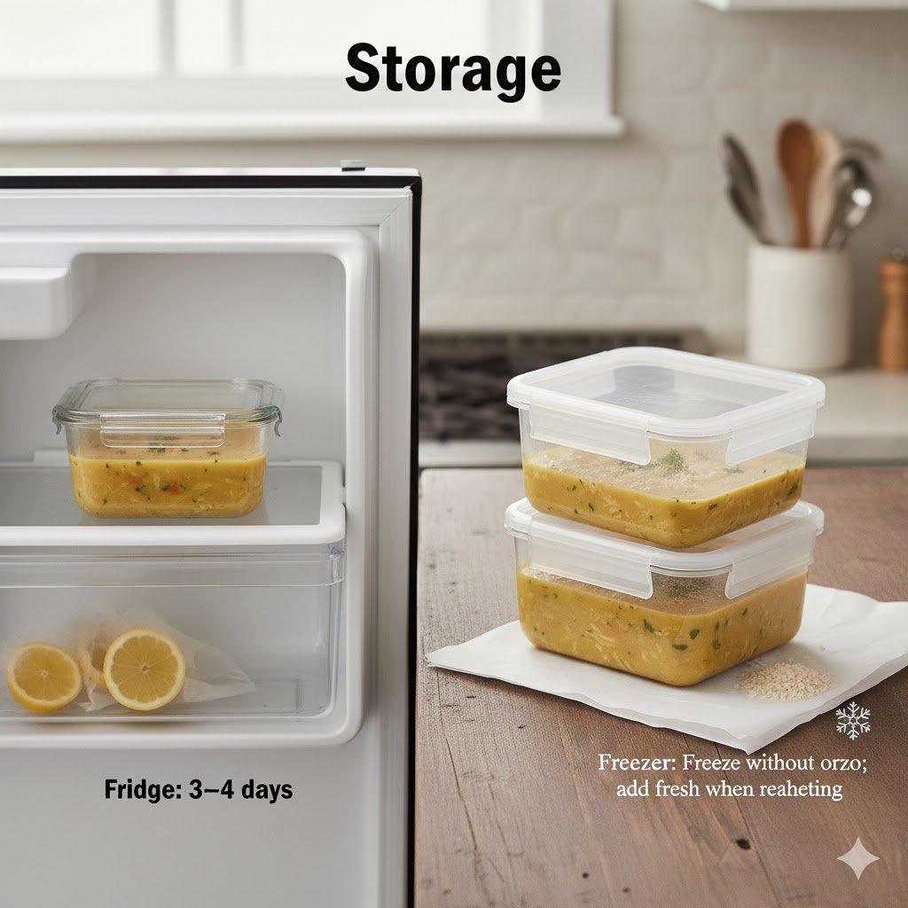 - Add more broth if the soup thickens (orzo absorbs liquid).