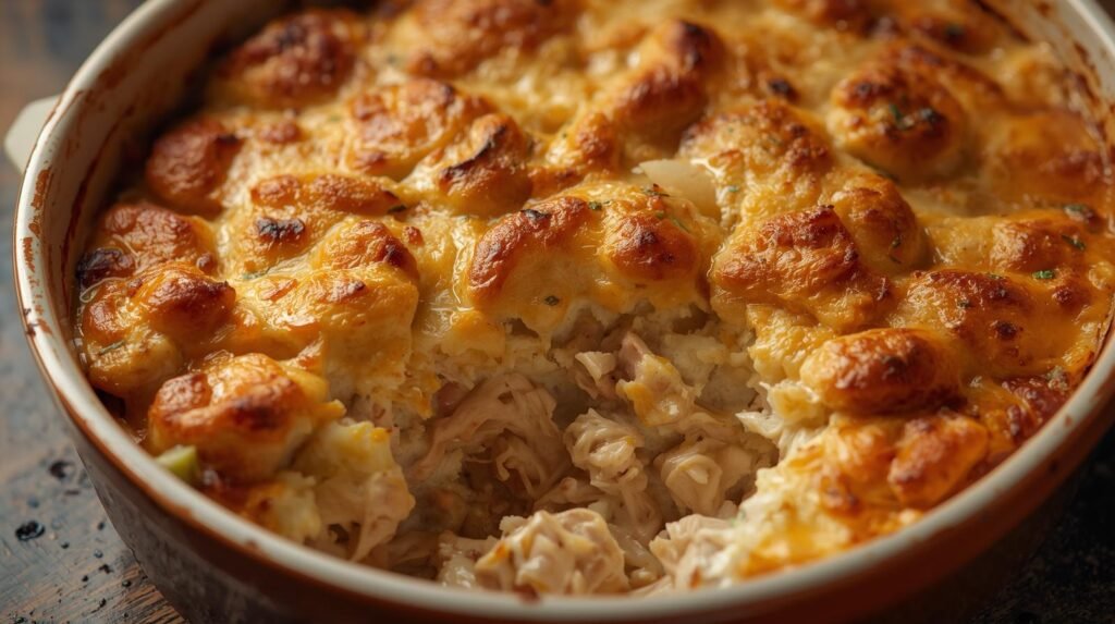 If you’re craving a warm, comforting, and creamy dish that feels like a hug in every bite, the Million Dollar Chicken Casserole is your answer. This classic recipe gets its name because it tastes like a million bucks—rich, satisfying, and absolutely irresistible. What makes this dish so special? It combines tender shredded chicken with creamy cheese, tangy sour cream, and a buttery cracker topping that bakes into a golden, crunchy crust. The flavors blend beautifully, creating a perfect balance of creamy and crispy textures.Whether you’re preparing dinner for your family or bringing a dish to a potluck, this casserole never disappoints. Serve it with a side of salad, garlic bread, or roasted veggies for a complete meal.The best part—it’s incredibly simple to make! You only need a few basic ingredients like cooked chicken, cream cheese, sour cream, shredded cheese, butter, and crushed crackers. Mix everything together, spread it into a baking dish, top with crumbs, and bake until bubbly and golden brown. In just a few easy steps, you’ll have a comforting, crowd-pleasing casserole that everyone will ask for again and again. It’s rich, creamy, and loaded with flavour truly a million dollar meal.