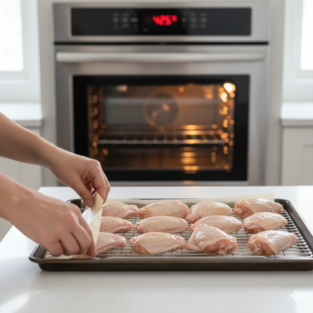 Place the wings in a single layer on the rack, making sure they’re not touching each other.