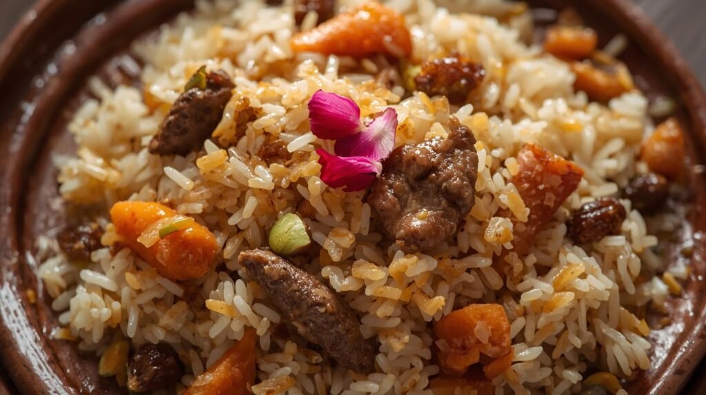 Saffron Infused Kabuli Pulao with Pistachio Rose Twist