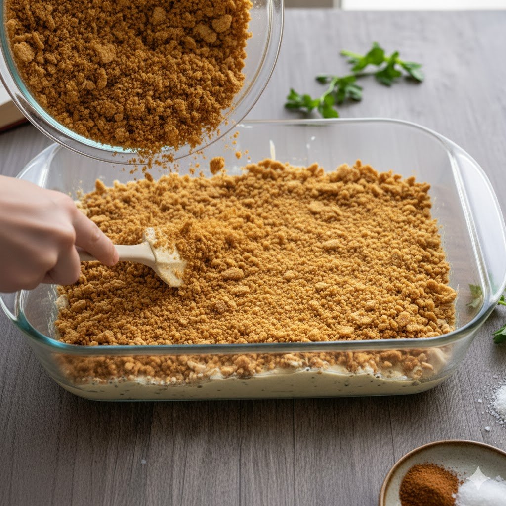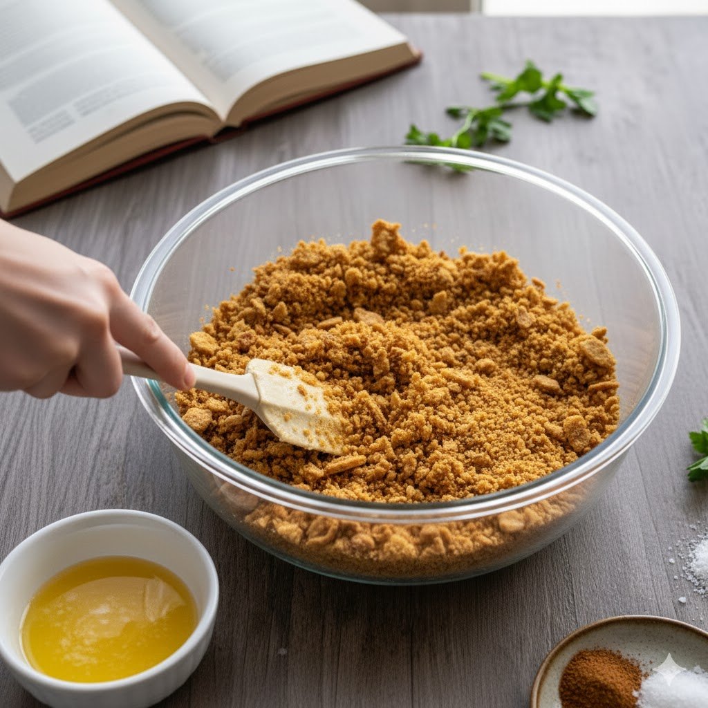 Mix crushed Ritz crackers with melted butter until crumbly.