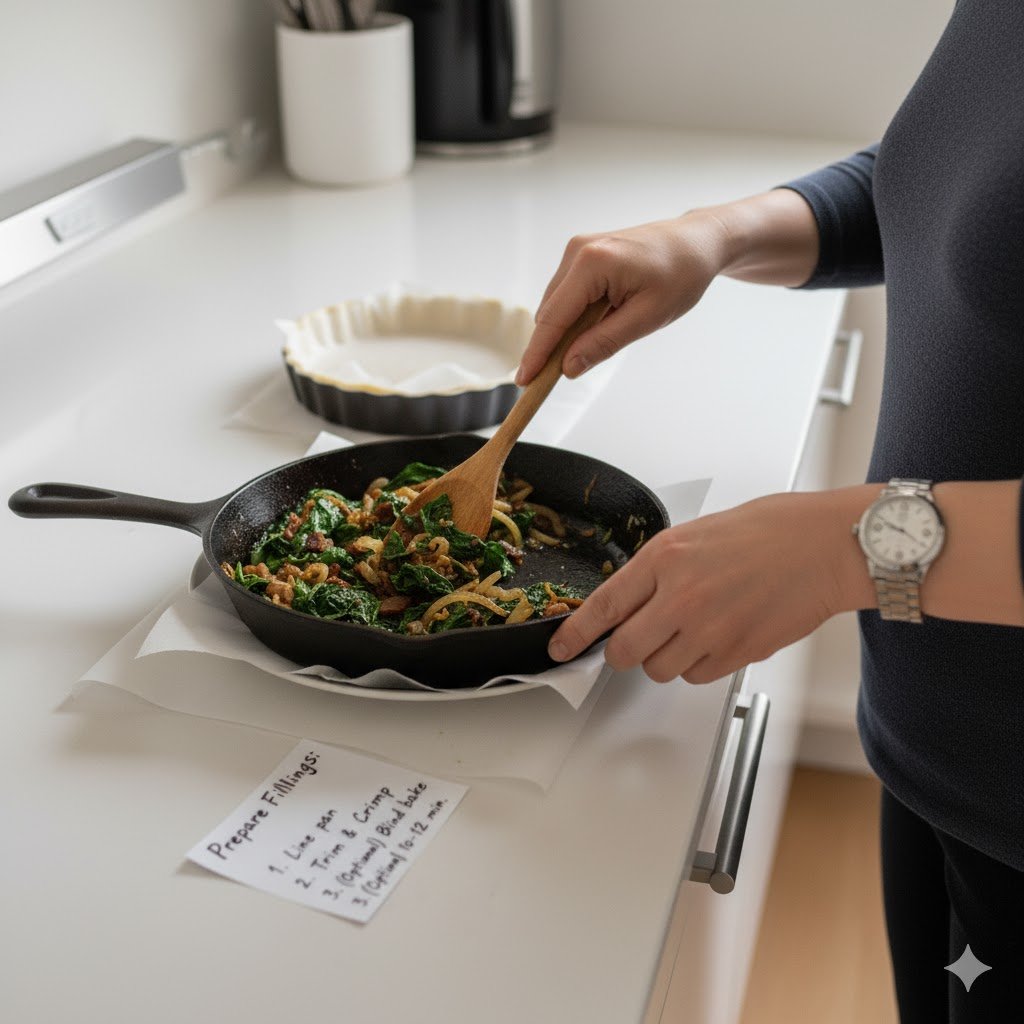 - (Optional but recommended) Blind bake for 10–12 minutes to prevent sogginess.