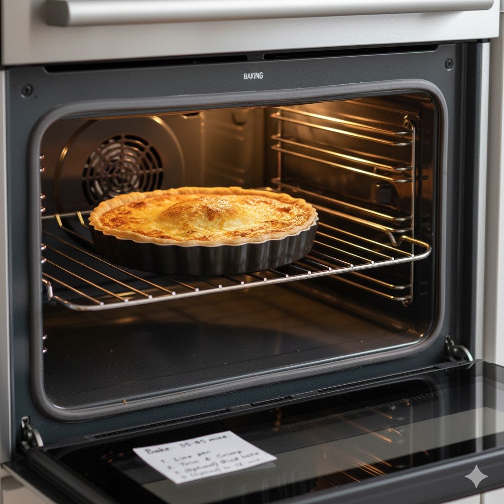 - Bake for 35–45 minutes, until the center is just set but still slightly wobbly.