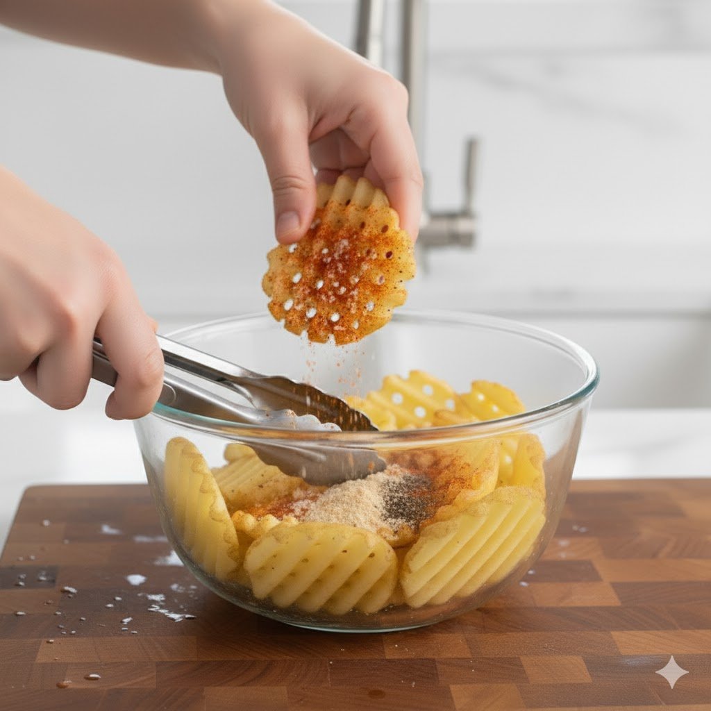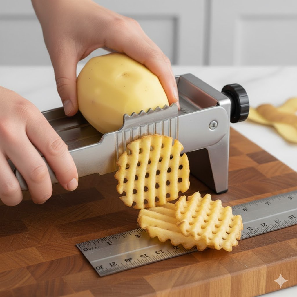 - Use a mandolin slicer with the waffle blade (crinkle-cut blade).
